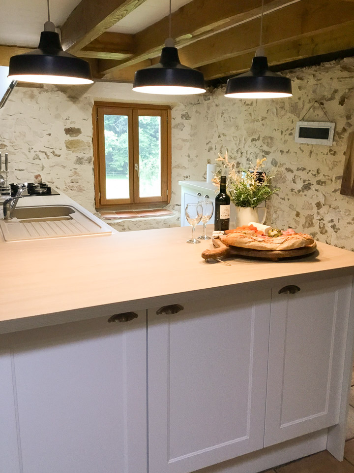 Completed in 2020, we are pleased to offer the new Apartment in addition to the lovely Gite. The Apartment has a king size bed and sleeps two people. It is finished to a high standard, and has a lovely contemporary feel, within the 200 year old stone barn. The deck gives a quiet area to eat and relax, with views over the paddock.