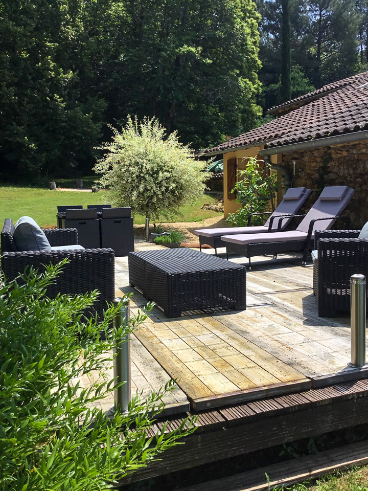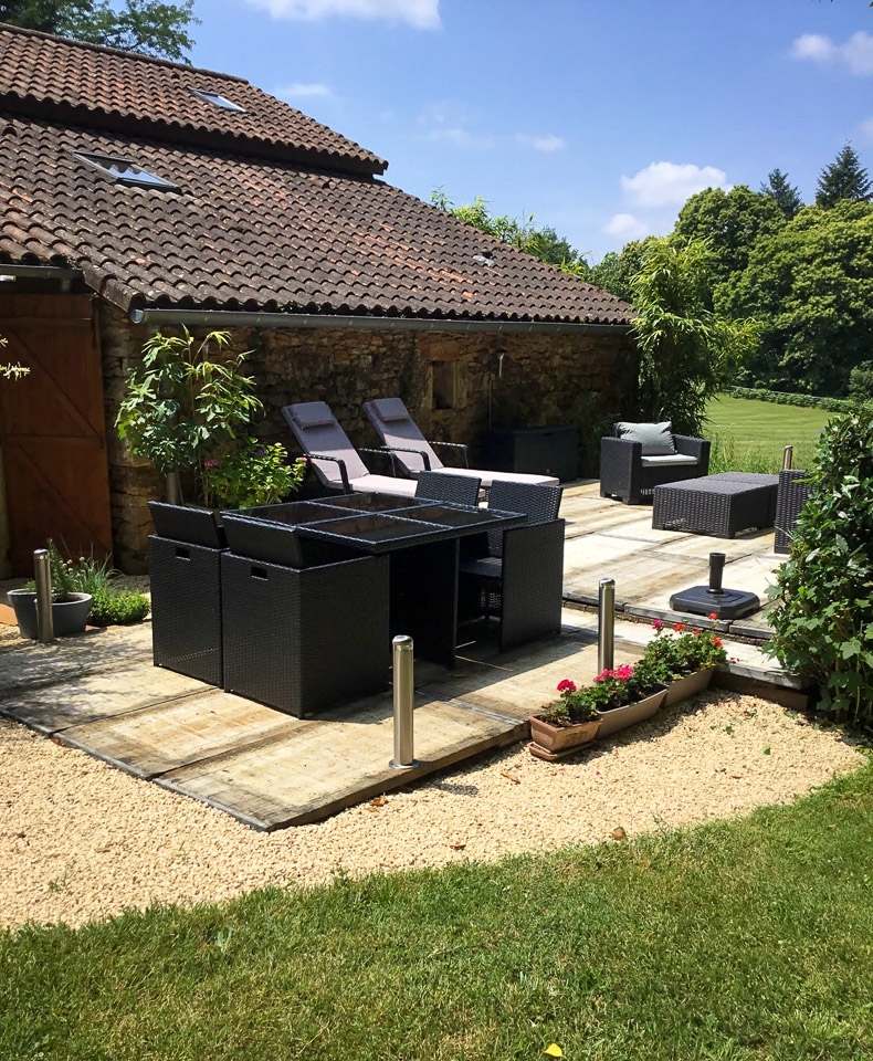 The Gite is a short distance from the owners house, has its own private entrance and secluded deck area and is set in a peaceful private setting overlooking woodland.